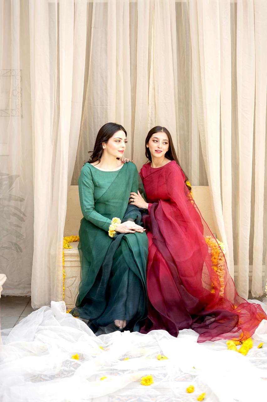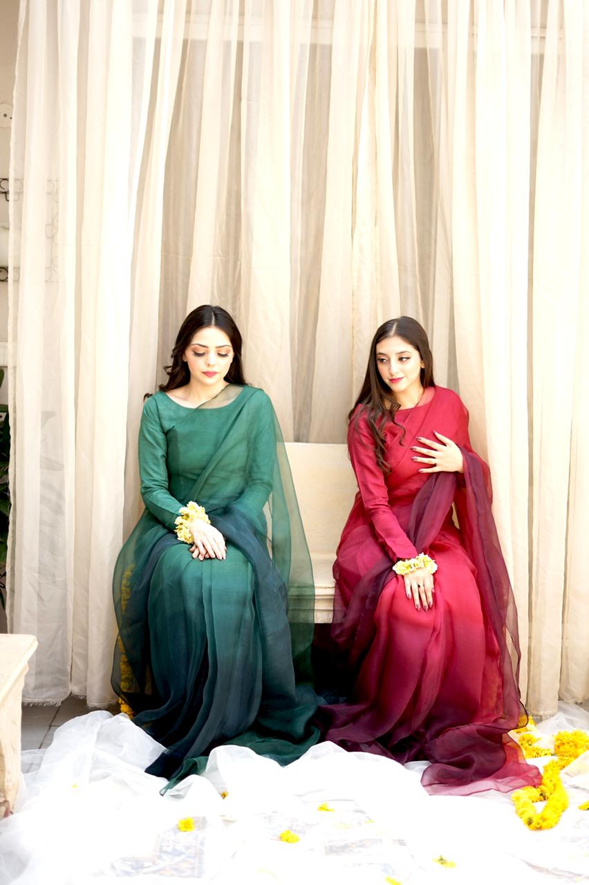 Magenta Pink and Plum Ombre Sarhi With Full fitted Sleeves Blouse